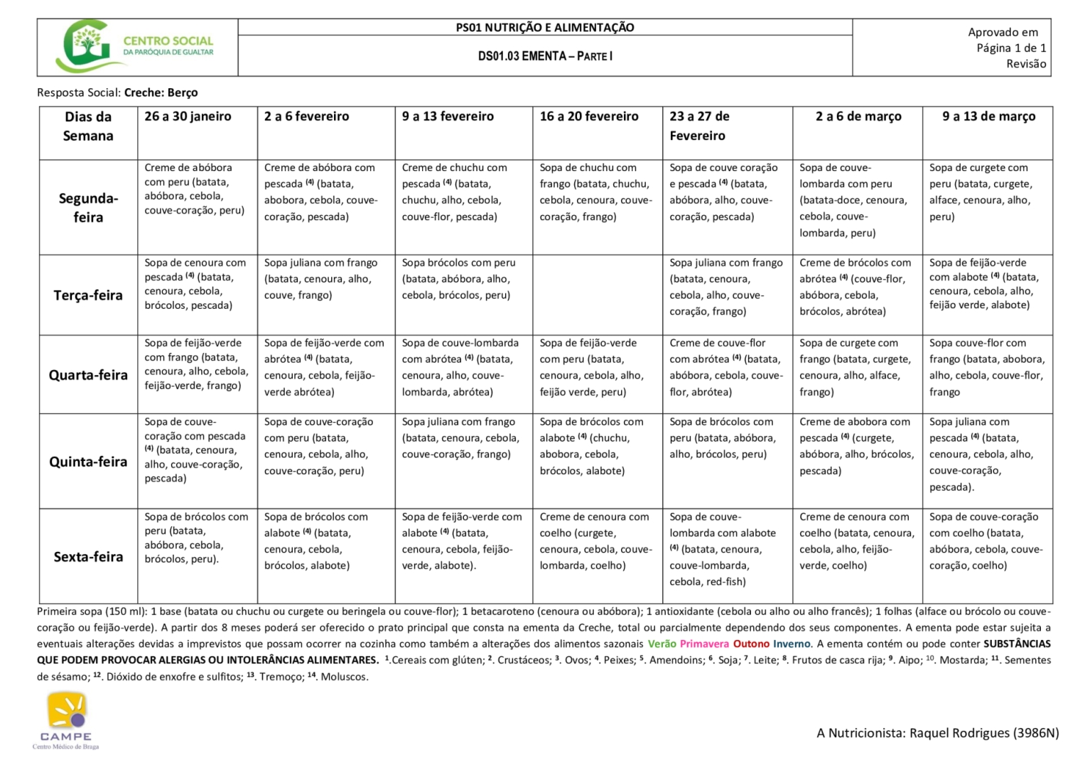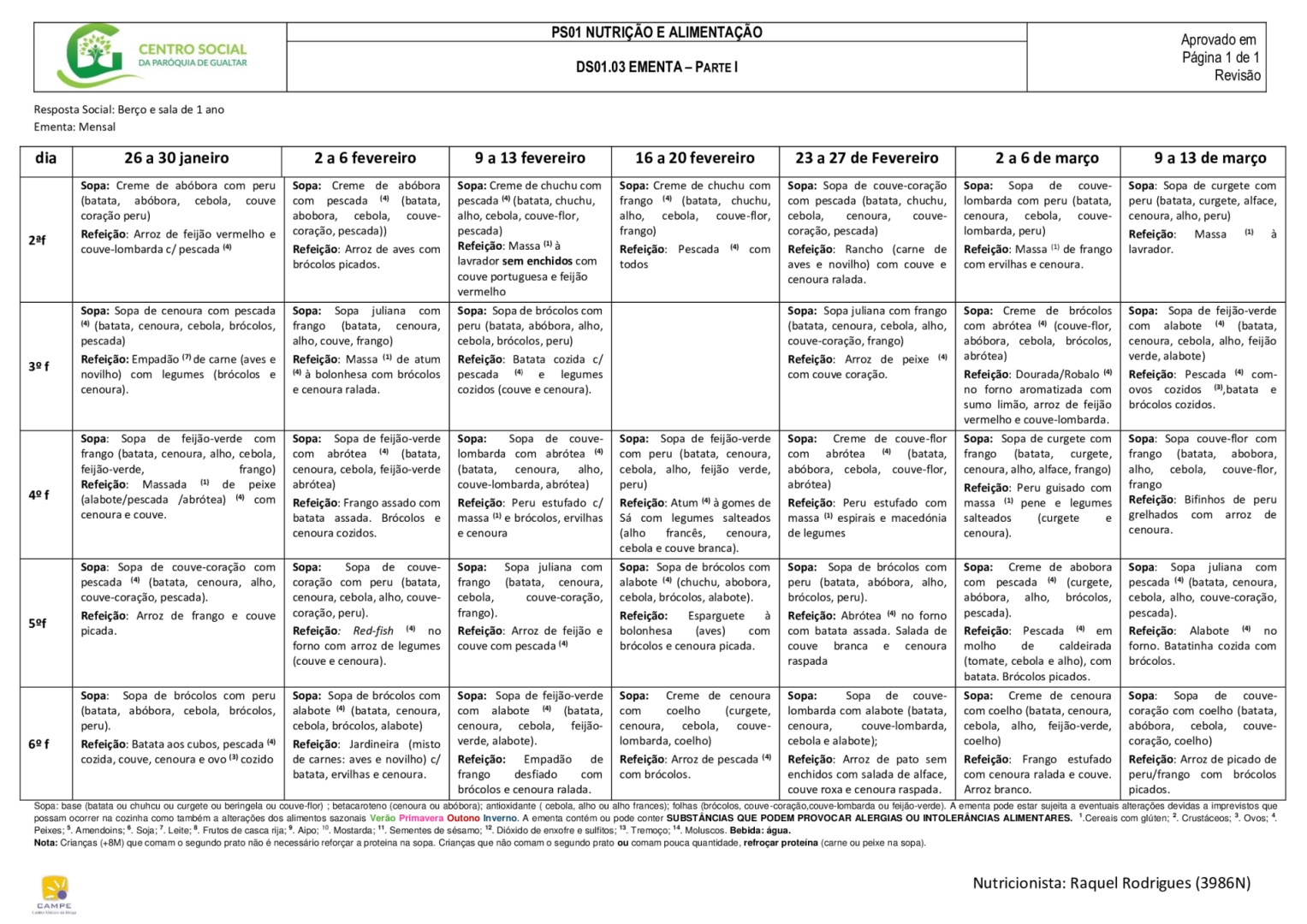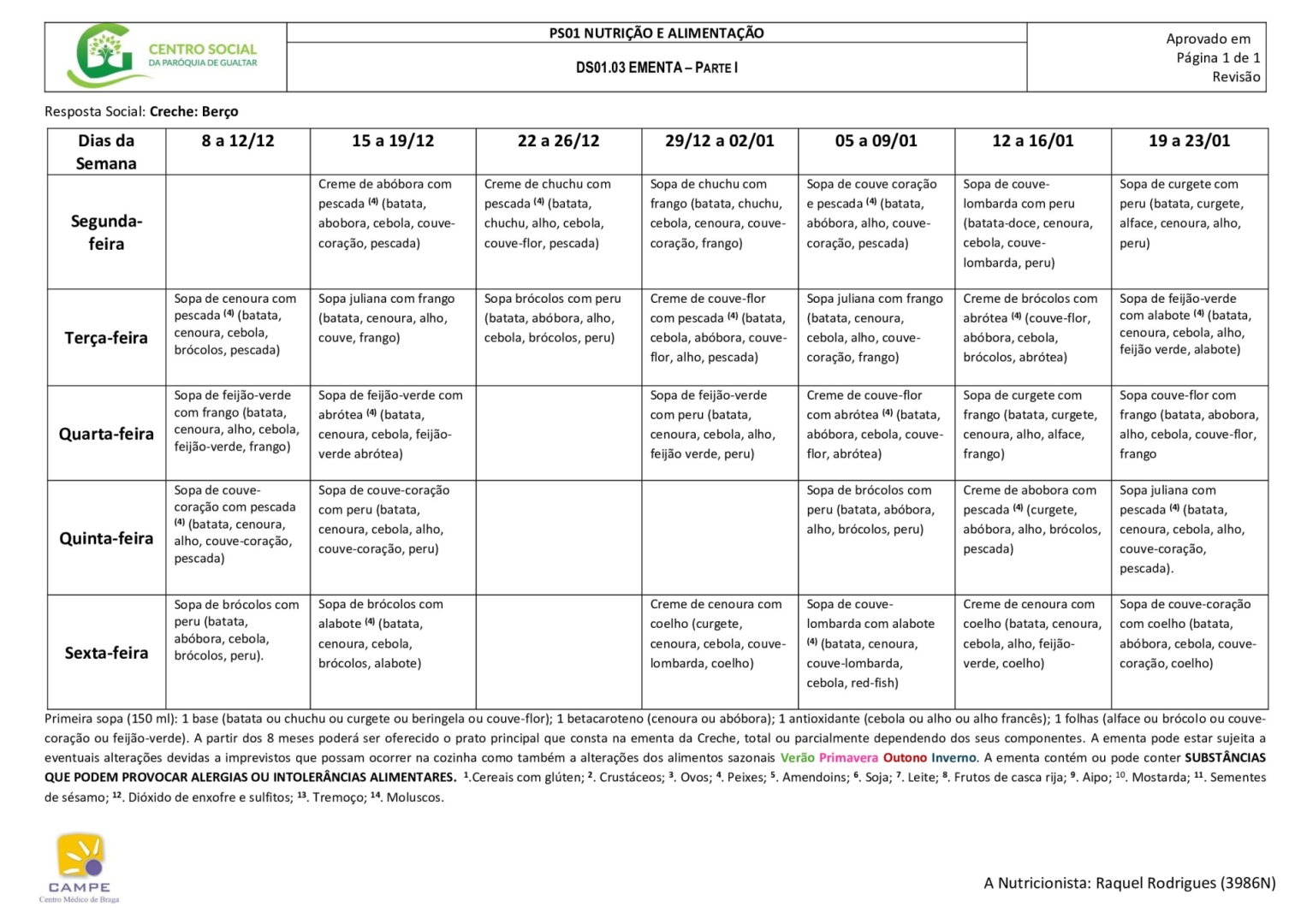Ementa creche (berço e 1 ano)