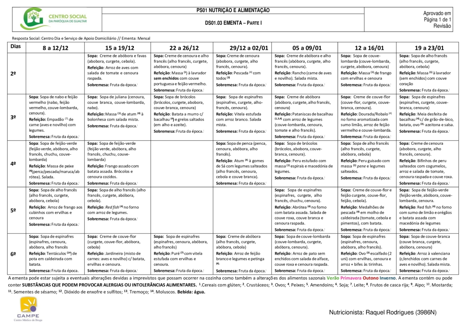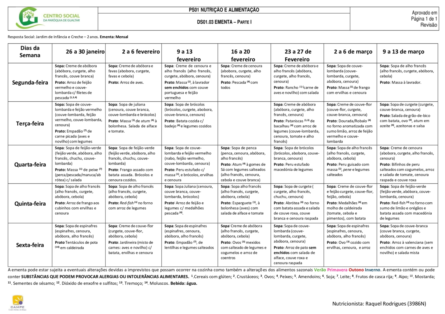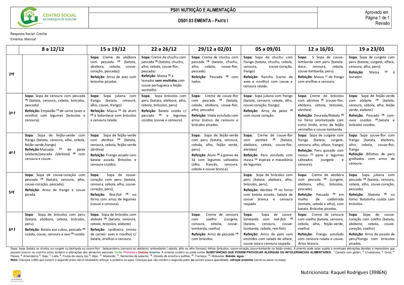Ementa creche (berço e 1 ano)